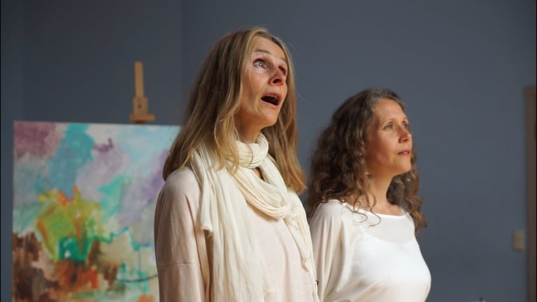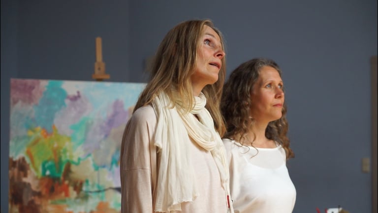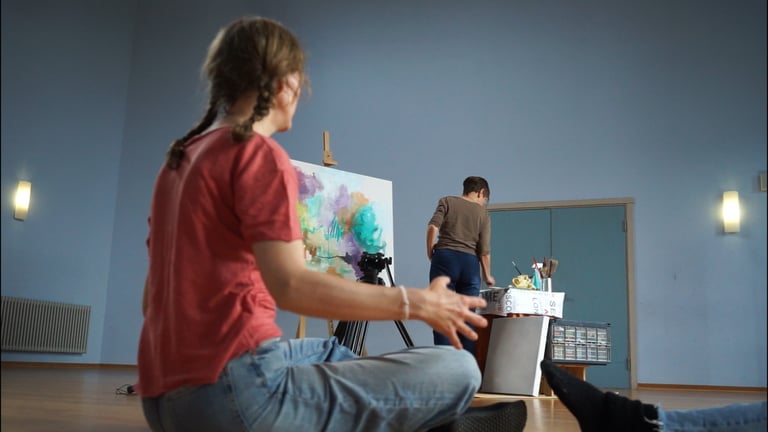 What happens when a painter is immersed in abstract vocal singing and music while creating her art? This documentary short captures the entire process of this unique co-creation, blending visual artistry with auditory inspiration. With a touch of spirituality, it explores how sound influences the painter's creative flow and expression.