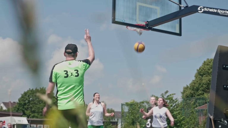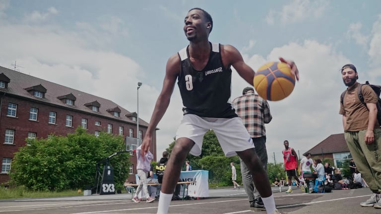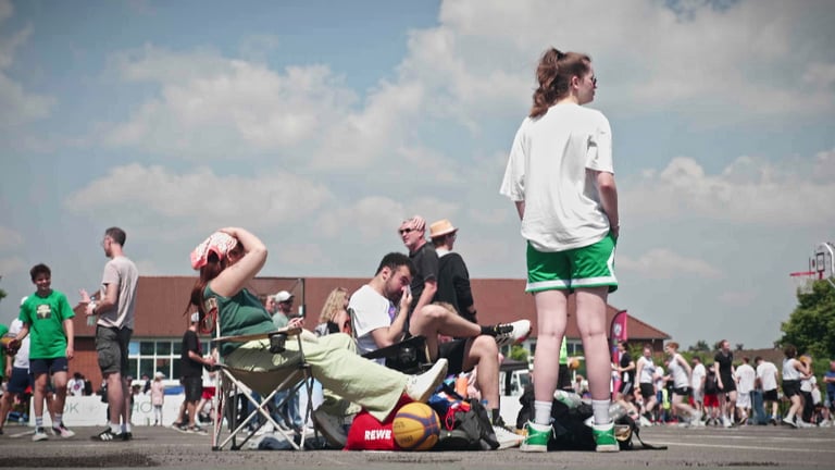 The Rochdale Barracks is a former military district now culturally reintegrated into the heart of Bielefeld's society. It serves as the vibrant backdrop for a 3x3 basketball tournament—a dynamic and fast-paced format that embodies team spirit, passion, friendship, and family. This event is more than just a competition; it’s a celebration of excitement, fun, and the high intensity of sport, bringing people together in a unique way.